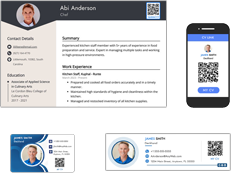 Add your QR Code to business cards. Dockwalk and discreetly distribute your always-updated CV. Hand them out to friends, employers, and recruiters at any time to stay connected or when applying for jobs.